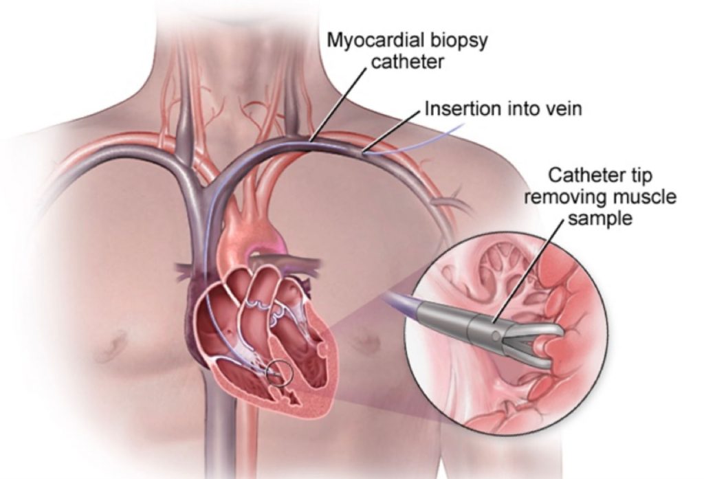 Diagnostic tests for all forms of cardiomyopathy include: chest x-ray, electrocardiogram (EKG), echocardiography, radionuclide imaging, and cardiac catheterization. In restrictive cardiomyopathy, a myocardial biopsy may be included.