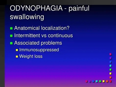 - pain when swallowing (odynophagia)