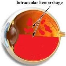 Hemorrhage may be described as an abnormal, severe, internal or external discharge of blood. Intraocular hemorrhage occurs within the eyeball.