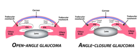 Open angle-closure glaucoma, also called wide-angle or primary open angle glaucoma, this is the most common type of glaucoma. The structures of the eye appear normal, but fluid in the eye does not flow properly through the drain of the eye.