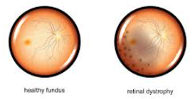 Vision impairment as related to the specific type of diagnosed retinal dystrophy.