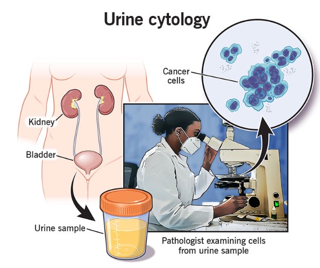 A physical examination that includes a bimanual examination assists in the diagnosis. Other diagnostic measures include: cystography; urinary cytology studies; cystoscopy; computed tomography (CT) scan; magnetic resonance imaging (MRI); abdominal ultrasound; and intravenous (IV) urography. For tests related to organs specific to women, see Diagnostic Code: 7628 Benign neoplasms of the gynecological system or breast.
