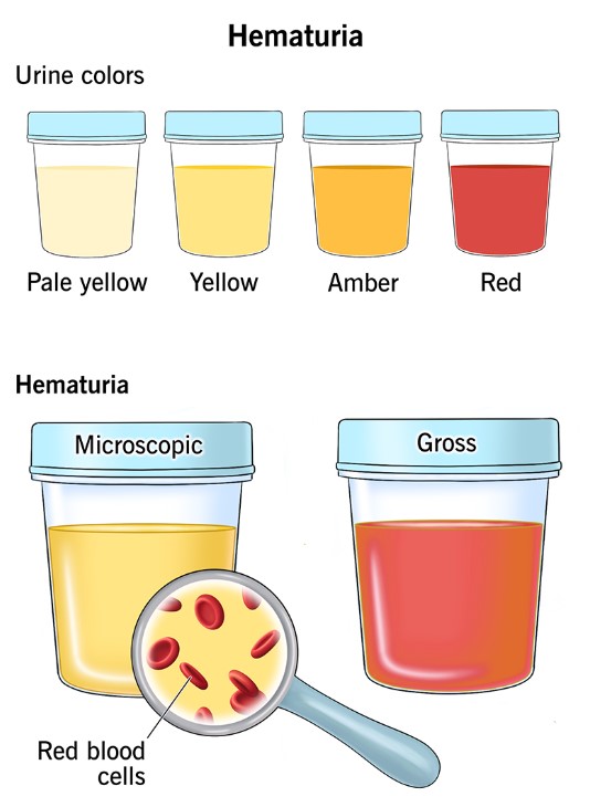 Local tissue invasion from a cyst, mass, or tumor can result in pressure on normal tissues, which can lead to inflammation. In addition, obstructive symptoms may occur (disruption in urinary or semen flow), and hematuria (blood in the urine) may appear. Bleeding into the tumor may result in local pain and tenderness. Some men have pain or discomfort resulting from a mass, whereas the enlargement may be painless.