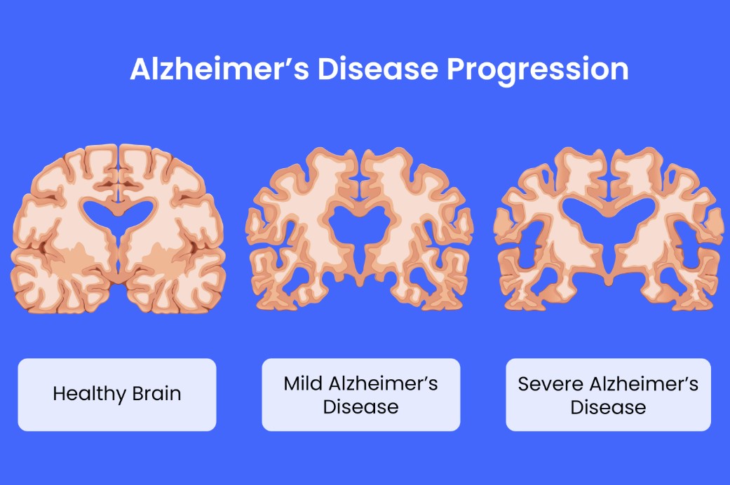 The onset of Alzheimer's disease is usually slow and gradual. The three stages are designated as early, intermediate and severe.